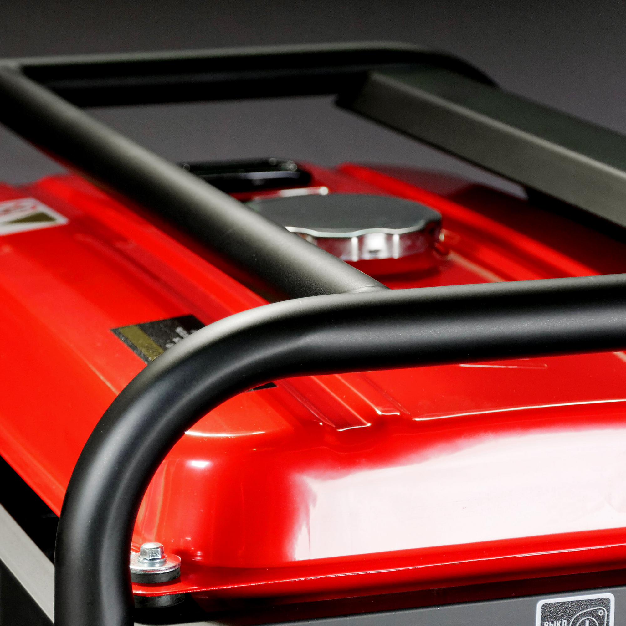 Усиленная толстостенная сварная рама, диаметром 32 мм. Подобная конструкция выдержит нагрузки во время сверхтяжелой эксплуатации. А наиболее важные части генератора надежно защищены от попадания грязи. Рама генератора имеет подготовку под установку набора для транспортировки. Если потребуется, то можно установить колеса и ручки за пару минут. Комплект с колесами и ручками докупается опционально.